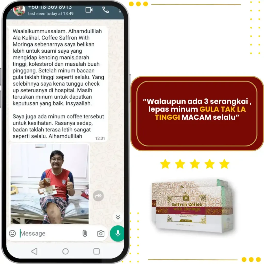 Mengikut Kajian Pakar & Doktor, Pengambilan 3 KOTAK Kopi Saffron Dengan Ekstrak Moringa Secara Konsisten Membantu Menstabilkan Bacaan Gula, Kolesterol, dan Tekanan Darah Dalam Masa 6 Minggu.